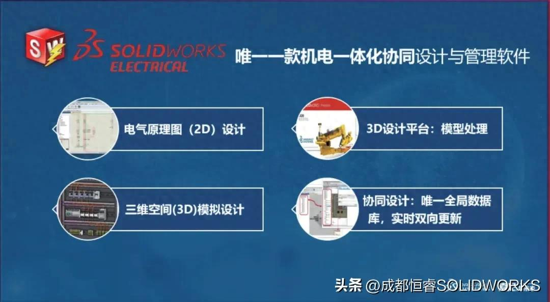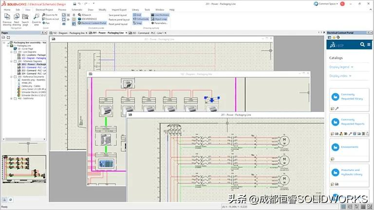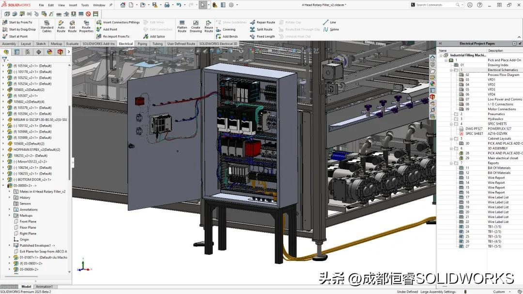 04SOLIDWORKS Electrical整體解決方案 我們能為客戶提供 一個完整的機(jī)電一體化解決方案 在2D方面,我們能高效準(zhǔn)確的進(jìn)行電氣原理圖設(shè)計,在3D方面,我們能實現(xiàn)3D空間布局模擬,路徑規(guī)劃,自動布線并手動調(diào)整,還能進(jìn)行一些碰撞、散熱、運(yùn)動路徑的仿真;需要制造BOM時,我們也可輕松導(dǎo)出;如果需要可視化的工藝裝配接線指導(dǎo),我們也可通過集成裁線機(jī)實現(xiàn)可視化接線工藝。 成都恒睿深度整合SOLIDWORKS Electrical技術(shù)優(yōu)勢,為客戶提供從規(guī)劃咨詢、平臺部署到深度定制的全方位機(jī)電一體化協(xié)同設(shè)計解決方案,助力企業(yè)打通設(shè)計壁壘,實現(xiàn)智能設(shè)計與高效制造的全面升級。 |