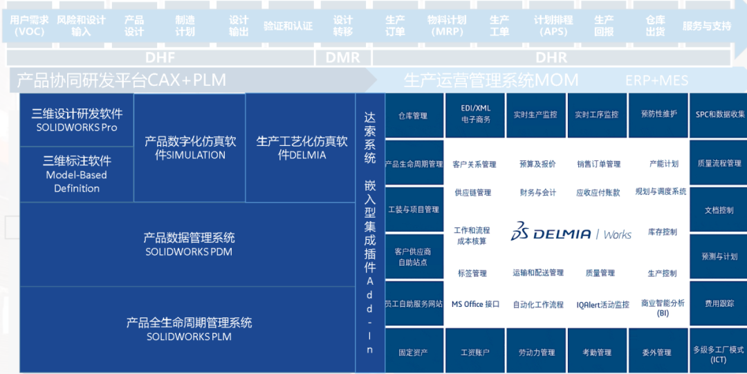 DELMIAWORKS之所以能被達(dá)索公司收購,原因在于其發(fā)現(xiàn)了在美國存在大量同時擁有SOLIDWORKS和DELMIAWORKS用戶的現(xiàn)象,這揭示了這兩個平臺都能夠滿足研發(fā)和制造運營的共同需求。這些客戶都面臨著類似的挑戰(zhàn),因此達(dá)索決定通過推出一體化管理解決方案,以幫助企業(yè)更加緊密地將研發(fā)和制造運營結(jié)合起來。