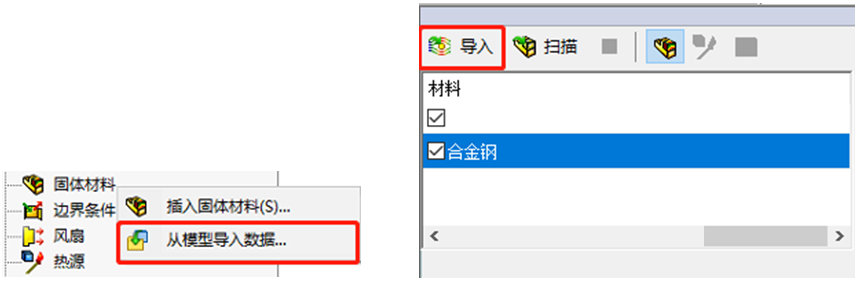 5、材料設(shè)置。從模型中直接導入材料,保證材料參數(shù)的一致性。