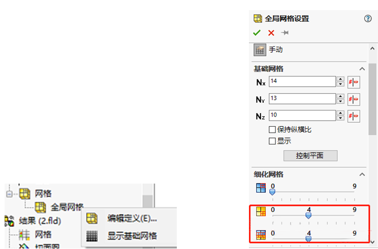 8、網(wǎng)格設(shè)置。對全局網(wǎng)格進行細化,保證計算精度,這里選擇固體網(wǎng)格和流固之間網(wǎng)格進行4級細化。