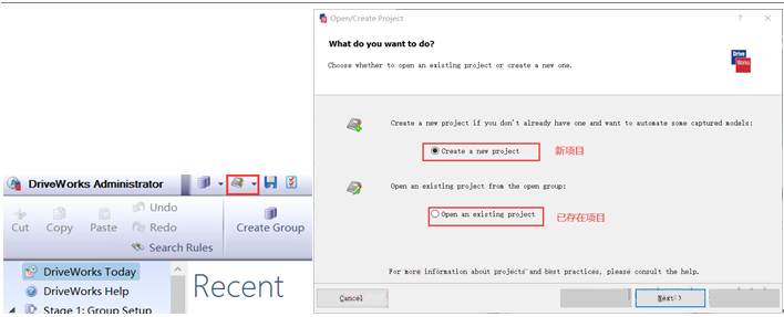 1、創(chuàng)建DriveWorks文檔,DriveWorks文檔可以分為Group文件與Project文件。