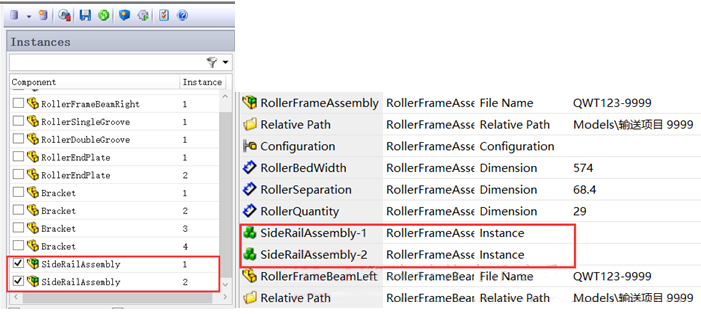 捕獲模型的實例數(shù):DriveWorks即可快速獲取裝配體中的每個零件插入的次數(shù),如圖所示的裝配體”SideRailAssembly”,插入裝配體次數(shù)為2,但是DriveWorks每次捕獲模型只獲取一種模型,但是模型實例數(shù)超過2個就必須要使用【Instances】捕獲模型實例數(shù),才能使單獨編制模型規(guī)則。