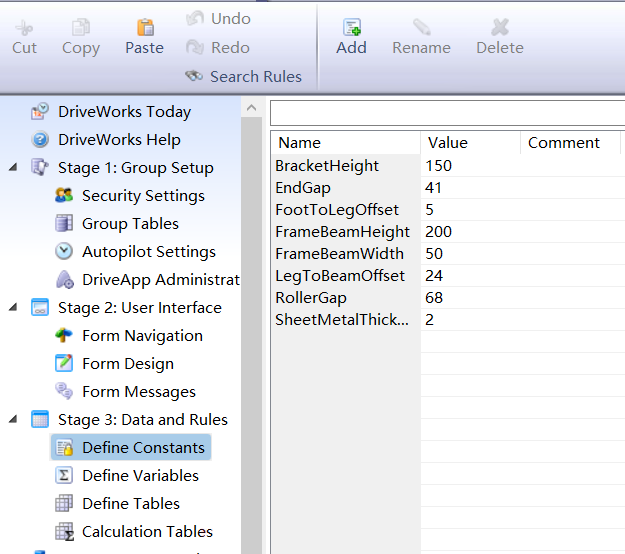 【Define Constants】:可以定義常量,如鈑金厚度、兩個部件間安裝間隙、門縫隙等,常量命名支持英文與中文。