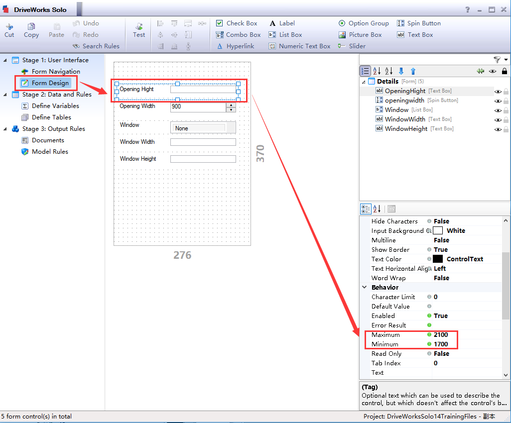 Step1、設(shè)定UI界面,設(shè)定Openging Hight/Openging Width作為輸入變量(并且設(shè)定其上下限的值)
