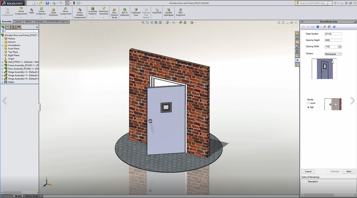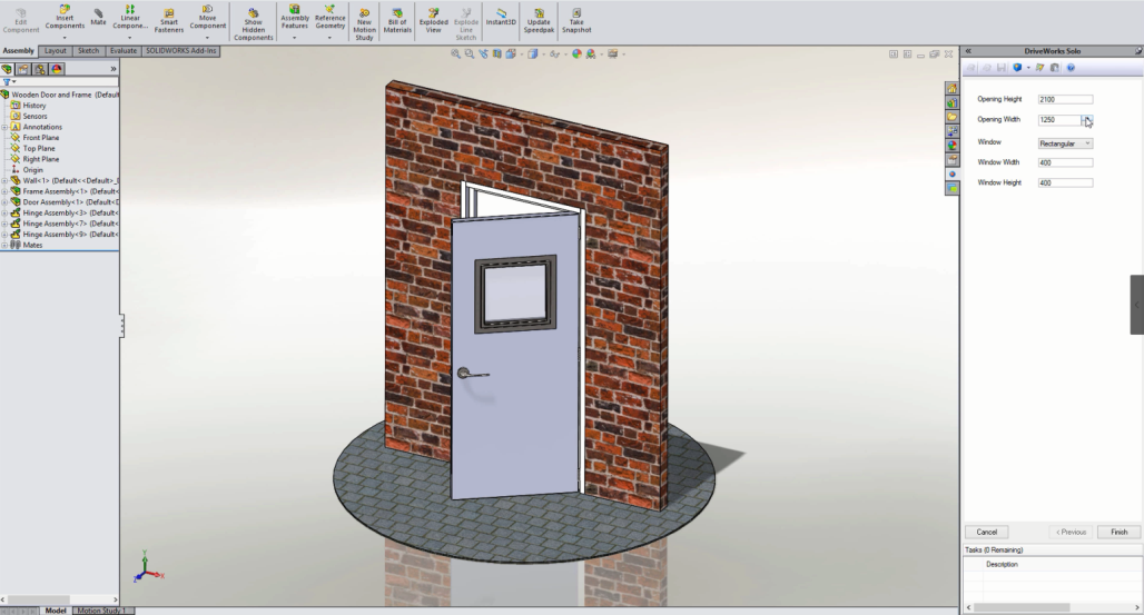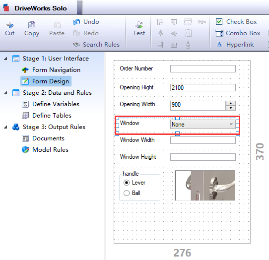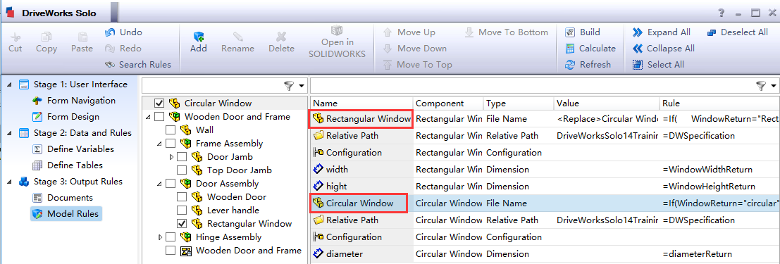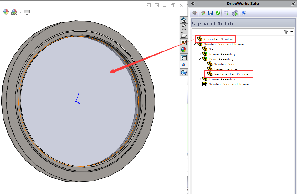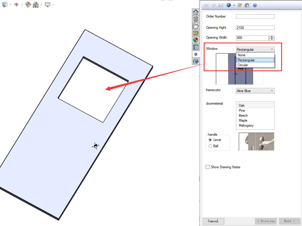 通過上述變量規(guī)則的添加,測試Rectangular 和 Circular window 能否正常切換,在SOLIDWORKS界面對其進行測試。