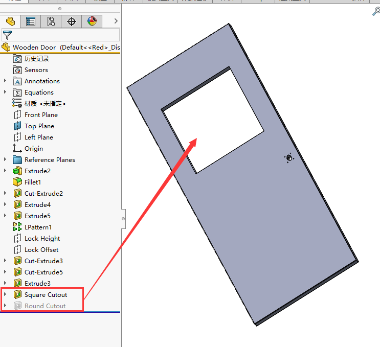 回到SOLIDWORKS界面中對其進行測試,看看UI界面中的windows窗口能否定義門上的槽口為圓或者為方形: