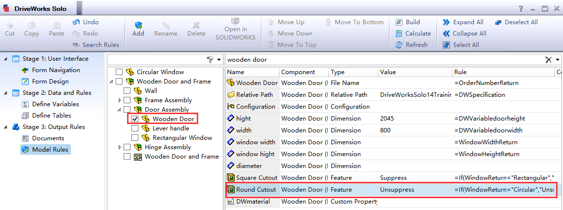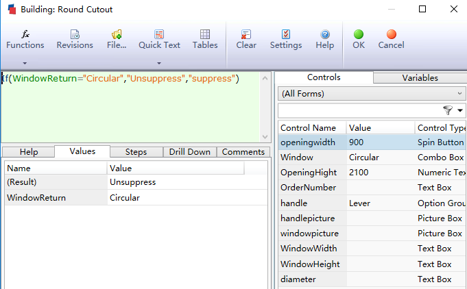 針對于門上的圓形窗口特征變量If(WindowReturn="Circular","Unsuppress","Suppress"):