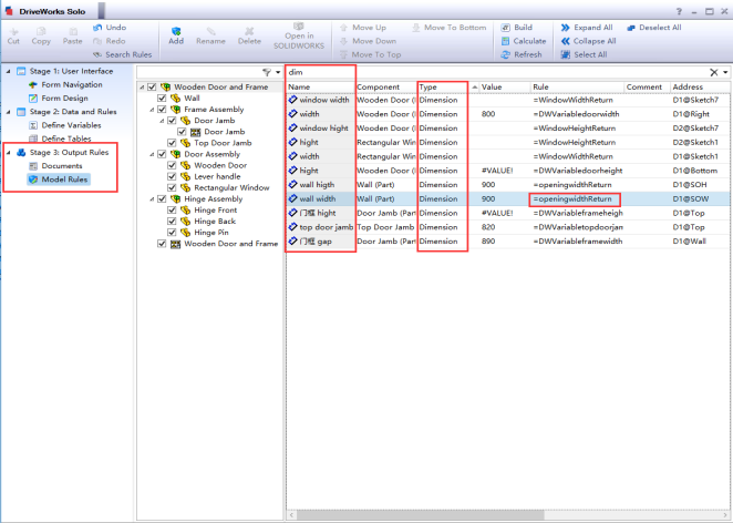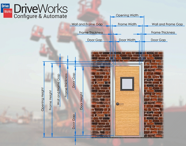 我們這里有一個門的設(shè)計,那么在這里通過DriveWorks的設(shè)置我們可以設(shè)置門的材質(zhì)/設(shè)置把手的類型/設(shè)置窗戶的形狀/設(shè)置門的大小。先以門的大小為例,我們一定要清晰門與門框與墻體之間變化的規(guī)則