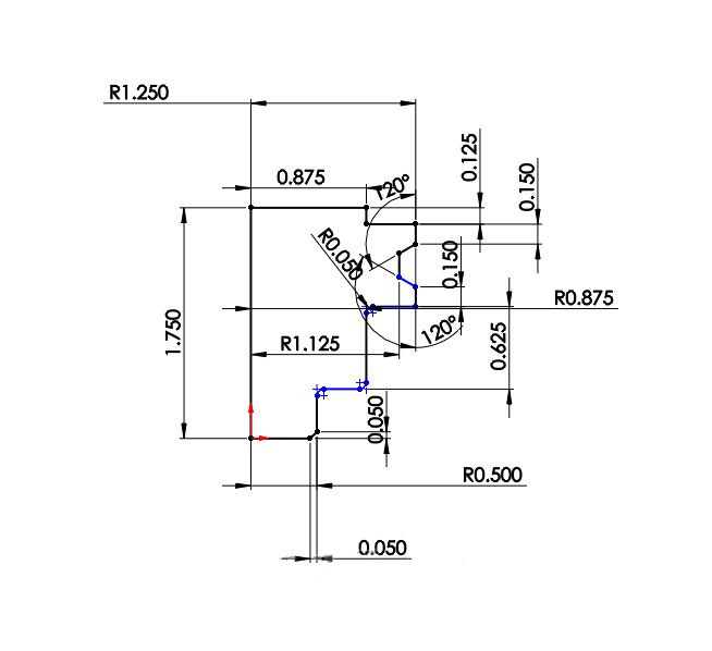 1、新建零件,選擇前視基準(zhǔn)面進(jìn)行刀夾草圖外輪廓繪制,注意:不需要中間預(yù)留裝刀具位