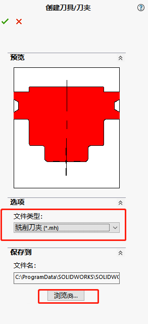 4、在選項(xiàng)文件類型中,選擇銑削刀夾,并自行保存至自定義文件夾中,文件中會(huì)多出尾綴.mh文件