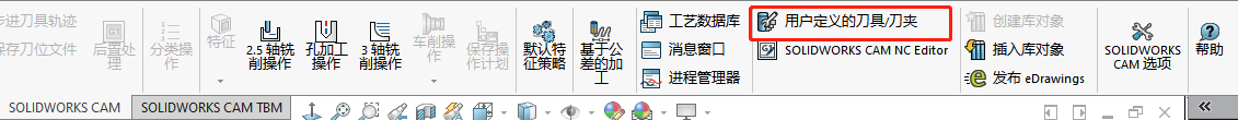3、生成實(shí)體后,在SOLIDWORKS CAM工具欄中,選擇用戶自定義的刀具/刀夾