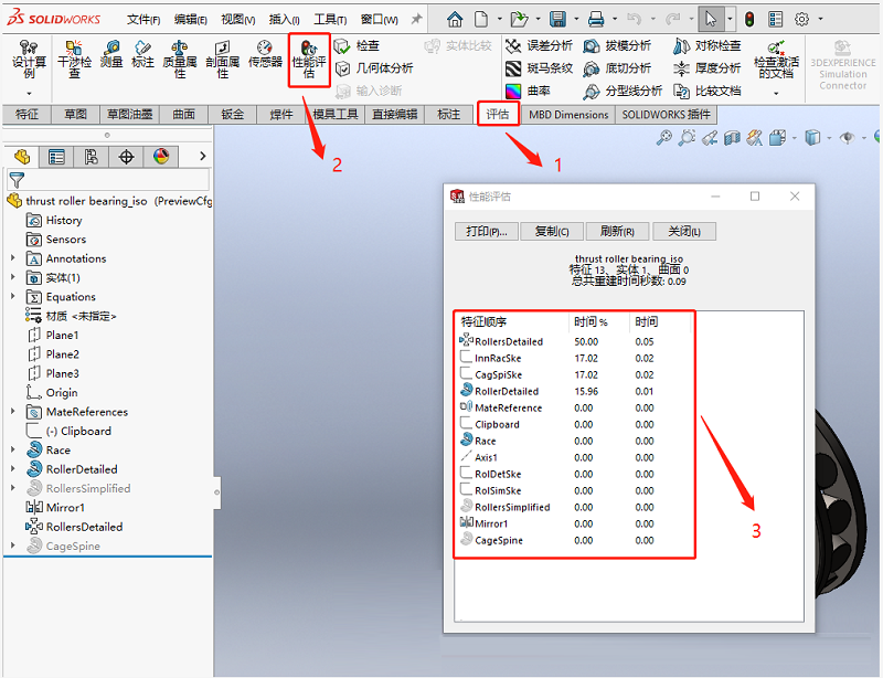 可通過(guò)“評(píng)估”—“性能評(píng)估”,來(lái)檢查零件是否存在性能問(wèn)題,如下截圖: