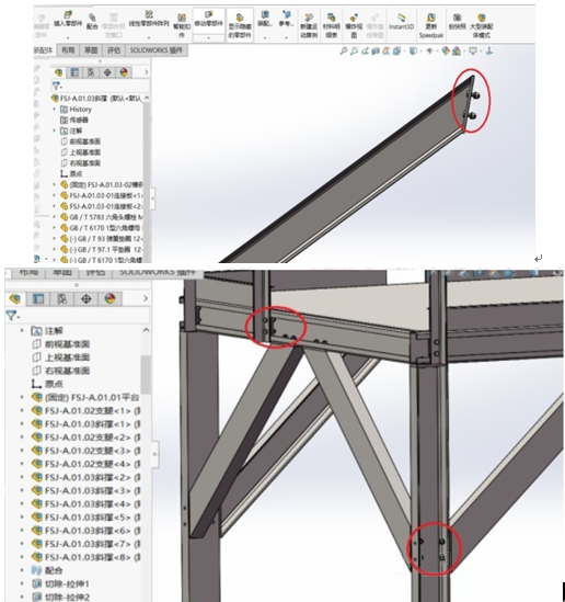 (2)善用子裝配體:①避免頂層裝配體內(nèi)插入零件,客戶產(chǎn)品需插入大量螺栓、螺母標(biāo)準(zhǔn)件,大大拖慢總裝配體的開(kāi)啟速度,可將螺栓建立在子裝配體內(nèi);