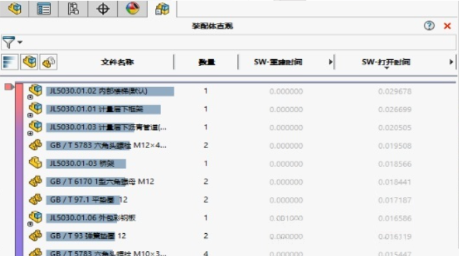 裝配體在打開(kāi)重建的時(shí)候需處理信息時(shí):?jiǎn)蝹€(gè)子裝的信息量比單個(gè)零件的要少;