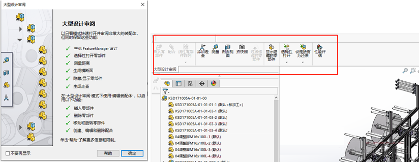 (4)大型設(shè)計(jì)審閱:大型設(shè)計(jì)審閱能快速打開(kāi)大裝配體,同時(shí)仍保留在進(jìn)行裝配體設(shè)計(jì)審閱時(shí)有用的各項(xiàng)功能;