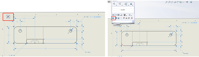 操作:框選視圖中的所有尺寸后,左上方或者右上方會(huì)自動(dòng)彈出【尺寸調(diào)色板】,在單擊【自動(dòng)排列尺寸】來調(diào)整間距并對齊尺寸。