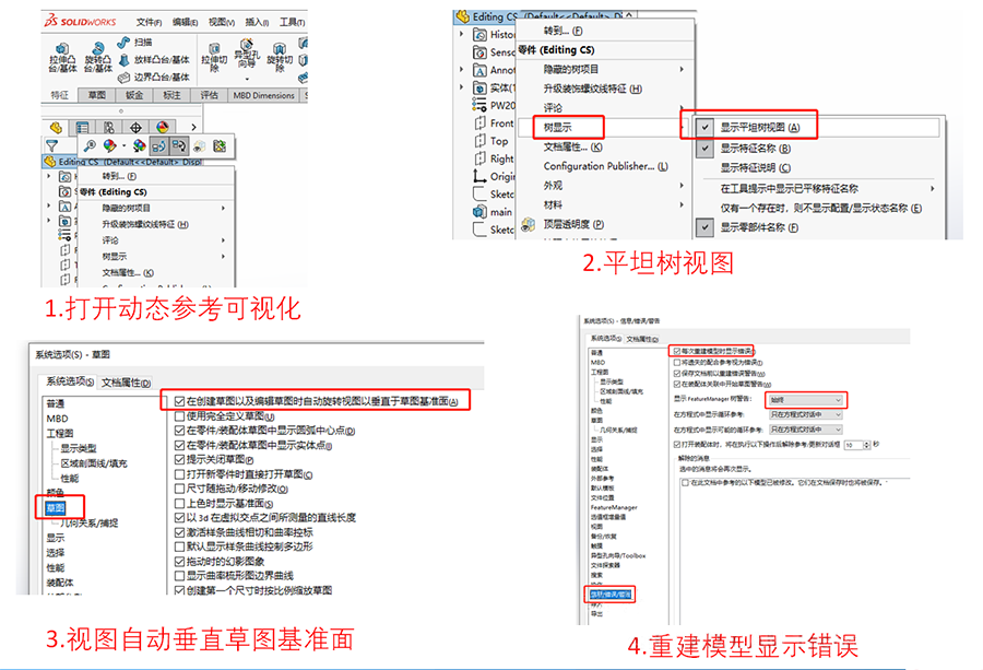SOLIDWORKS實(shí)用小命令及操作小技巧匯總:(1)Instant 2D Instant 3D;(2)零件與工程圖之間的切換;(3)工程圖內(nèi)移動(dòng)或復(fù)制尺寸;(4)工程圖中關(guān)聯(lián)模型尺寸自動(dòng)生成標(biāo)注尺寸;(5)工程圖中快速對齊尺寸;(6)草圖狀態(tài)下快速給點(diǎn)添加定位尺寸;(7)模型樹的折疊與展開;(8)修改報(bào)錯(cuò)零件文件的預(yù)設(shè)置;(9)繪制的草圖無法生成特征;(10)草圖元素替換······