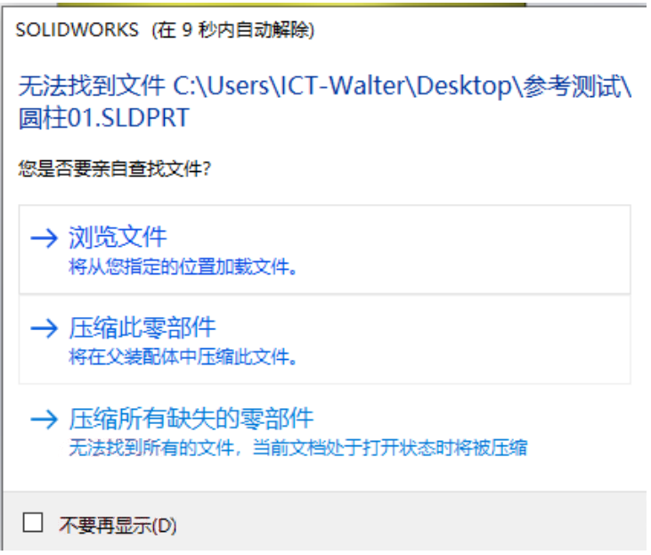 選項二:在壓縮缺失文件的情況下,打開裝配體 ? 選項三:對此裝配體中所有缺失文件進行壓縮,并打開裝配體