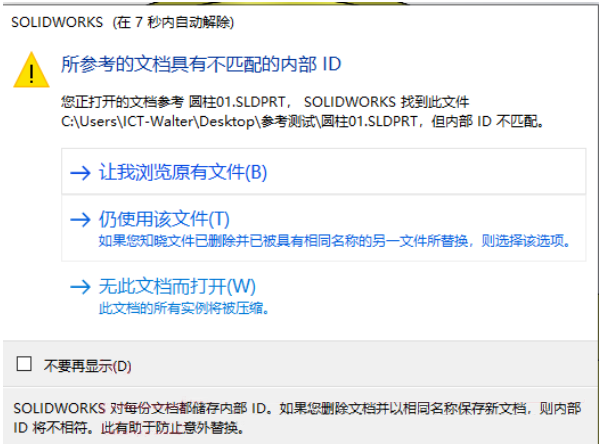 Q:如下圖當(dāng)SOLIDWORKS 提示,無法找到文件—請問軟件是根據(jù)內(nèi)部 ID 查找?還是外部 ID 在查找?