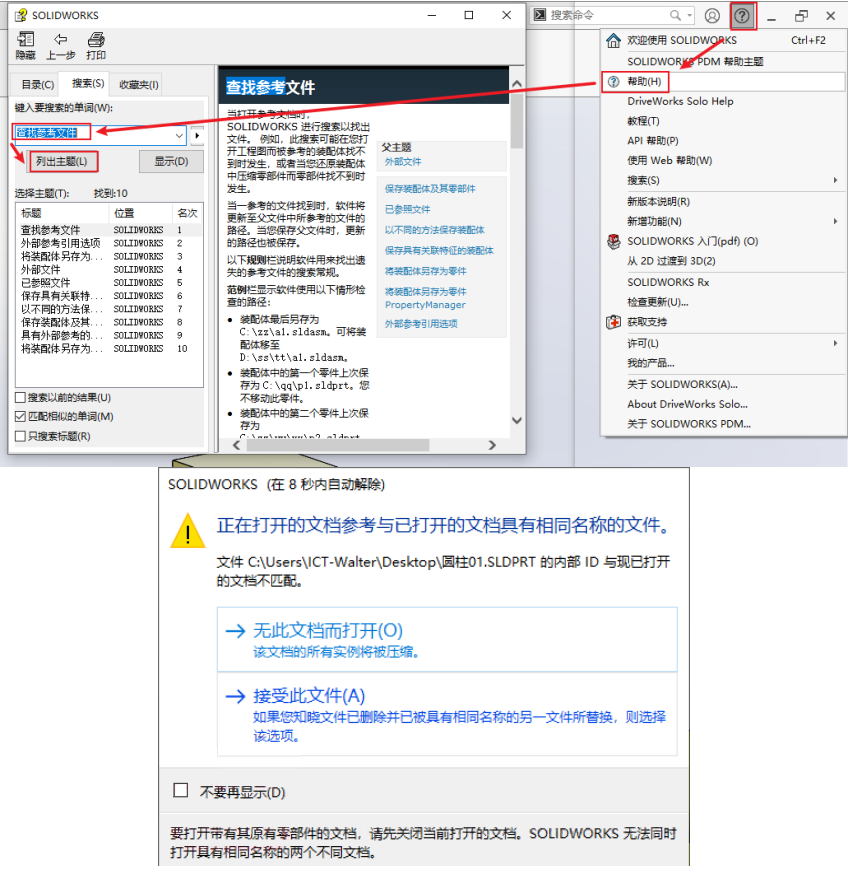 注意:軟件的 7 個步驟按照順序優(yōu)先,比如第一步 在 SOLIDWORKS 已打開的文件中查找同名文件,如果找到,則后續(xù)步驟將不會發(fā)生。