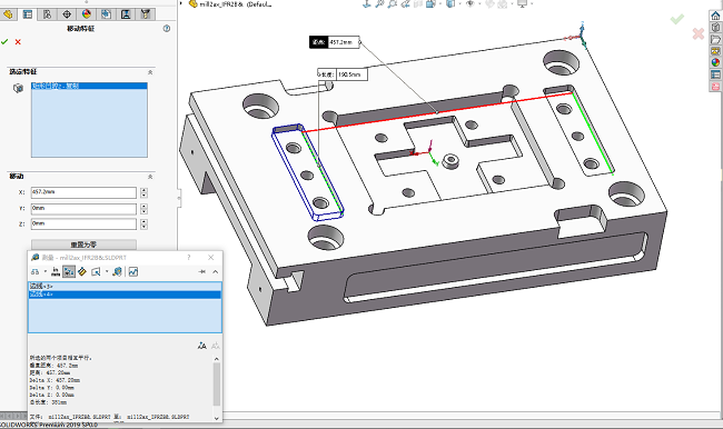 3、那么,我們?nèi)绾巫審?fù)制的信息變成新增特征上了?SOLIDWORKS CAM允許我們對(duì)設(shè)計(jì)樹中的編程特征進(jìn)行手動(dòng)移動(dòng);故,我們只需要測(cè)量我們新增特征到原始特征上的相應(yīng)距離,并輸入相應(yīng)尺寸即可。