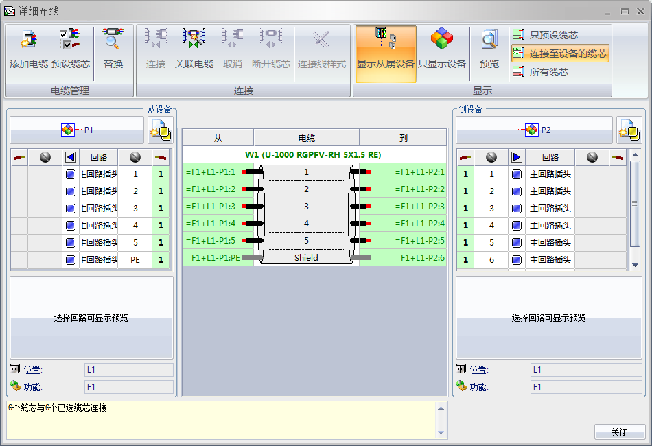 可以事先為每個連接器選擇設(shè)備型號,這樣在雙擊電纜(或選擇工具欄中的“詳細布線”)就可以為連接器選擇合適的電纜。建立了詳細的連接關(guān)系后,方可以完成詳細布線。