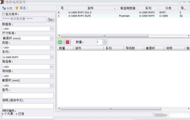 (2)選擇電纜系列:<在分類中>選擇系列為U-1000RVFV (搜索自動(dòng)進(jìn)行)。