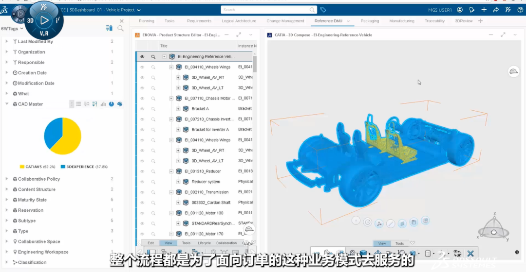 比如,特斯拉將它的研發(fā)工具、研發(fā)管理平臺(tái)以及工藝平臺(tái)統(tǒng)一部署在3DEXPERIENCE平臺(tái)中,借此,特斯拉完成快速迭代、同步工程,減少了同步工程過程中的設(shè)計(jì)反復(fù)以及避免變更的斷層。