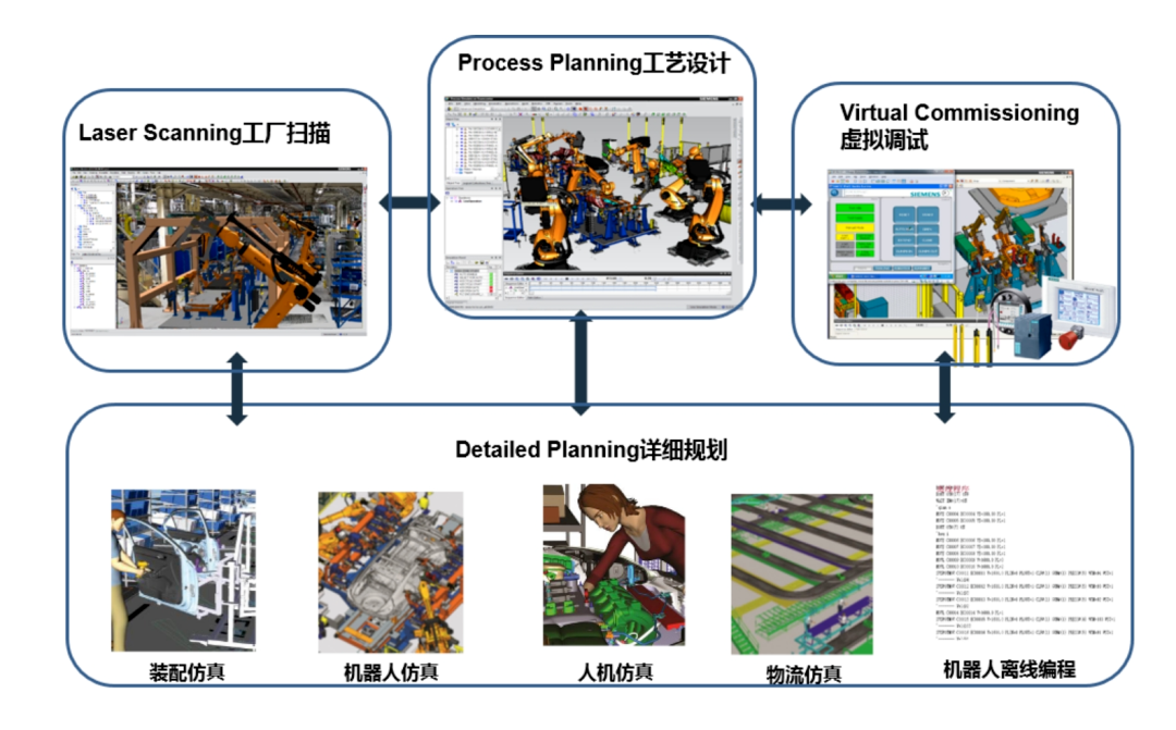 達(dá)索系統(tǒng)基于3DEXPERIENCE(3D體驗(yàn)平臺(tái))的機(jī)器人仿真與虛擬孿生解決方案,提供了一個(gè)集機(jī)器人和自動(dòng)化設(shè)備規(guī)劃與驗(yàn)證為一體的虛擬環(huán)境,能夠模擬機(jī)器人在真實(shí)環(huán)境中的工作情況,具有邏輯驅(qū)動(dòng)設(shè)備技術(shù)和集成的真實(shí)機(jī)器人仿真技術(shù)。