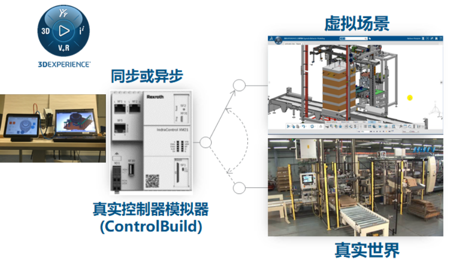 基于3D體驗(yàn)平臺(tái),工程師可進(jìn)行多PLC的調(diào)試作業(yè),包括創(chuàng)建虛擬PLC,連接多品牌實(shí)際PLC,軟件在環(huán),硬件在環(huán),且系統(tǒng)支持多種程序編程語(yǔ)言、多種PLC通訊協(xié)議。同時(shí),3D體驗(yàn)平臺(tái)支持復(fù)雜產(chǎn)線多控制信號(hào)聯(lián)調(diào),包括多級(jí)別虛擬調(diào)試(設(shè)備/工位/產(chǎn)線),以及虛實(shí)雙向交互控制。
