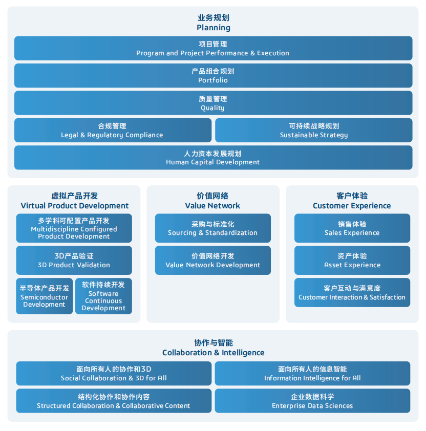 ● 全生命周期數(shù)字鏈條,產(chǎn)品數(shù)據(jù)在設(shè)計(jì)、工程、制造等各階段無(wú)縫流轉(zhuǎn)