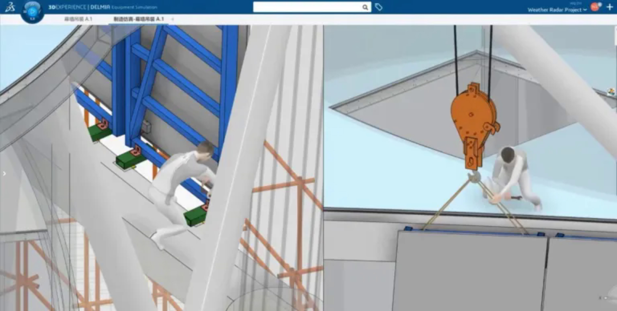 采用行業(yè)解決方案Building Design for Fabrication與Integrated Built Environment,中南建筑設(shè)計(jì)院(CSADI)通過3DEXPERIENCE平臺采用智慧施工,在武漢新一代天氣雷達(dá)項(xiàng)目施工之前,為其創(chuàng)建了一個建筑工程虛擬孿生體驗(yàn)。